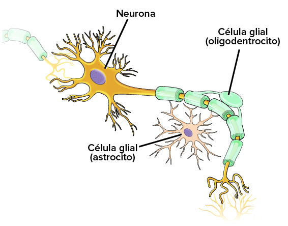 Las neuronas son la unidad funcional básica del sistema nervioso. Generan señales eléctricas llamadas impulsos nerviosos o potenciales de acción que les permite a las neuronas transmitir información muy rápidamente a largas distancias. La función principal de la glia es apoyar la función neuronal.