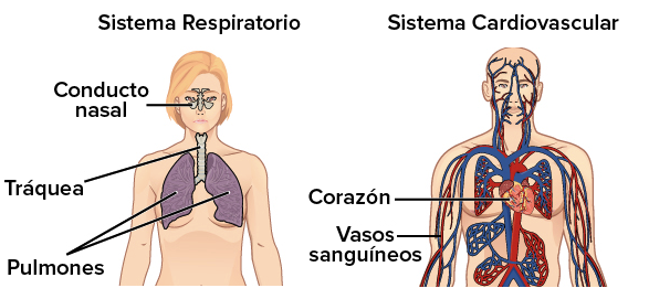 Por ejemplo, el corazón y los vasos sanguíneos constituyen el sistema cardiovascular. Estos órganos trabajan en conjunto para hacer circular la sangre, transportando oxígeno y nutrientes a las células de todo el cuerpo y retirando dióxido de carbono y desechos metabólicos. Otro ejemplo es el sistema respiratorio, que lleva oxígeno al cuerpo y elimina el dióxido de carbono. Este incluye la nariz, la boca, la faringe, la laringe, la tráquea y los pulmones.